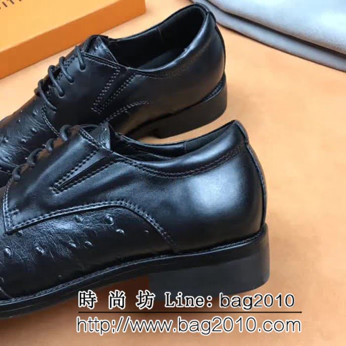 【全羊內裏】LV 正裝男士皮鞋新款來襲 原版品質 鞋面採用義大利進口擦色牛皮,舒適羊皮裏,耐磨防滑組合大底,鞋型端莊,奢華魅力無所掩蓋!自然灑脫的新貴主義,引領潮流。碼數:38-44
