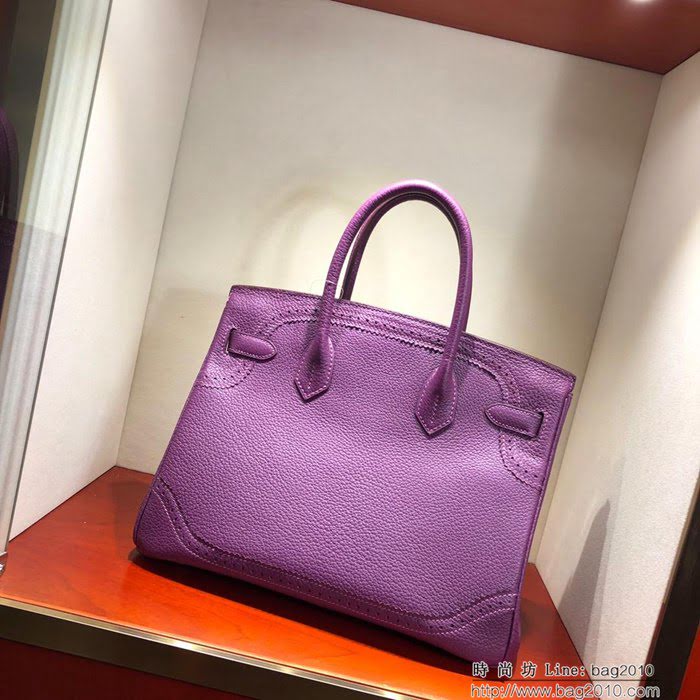 HERMES愛馬仕 鉑金包 Birkin Ghillies 30Cm Swif拼Tc P9 Anemonb 海葵紫 金扣 頂級工藝 手縫蠟線 時尚手提包  Ama1595