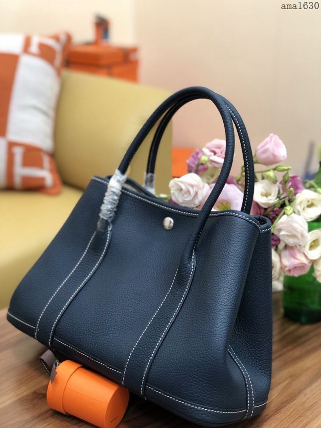 HERMES女包 花園包30cm Garden party 愛馬仕togo皮手提包 鴨子藍 Ama1630