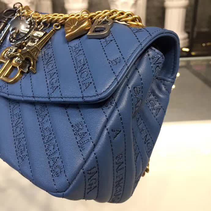 巴黎世家 BALENCIAG LOCK ROUND 18年早春 絎縫鏈條包 包身字母刺繡LOGO 配以五金配件 翻蓋袋口紐扣設計 內里拉鏈隔層 方便收納小物品 時尚百搭簡約 小號尺寸21*8.5*15