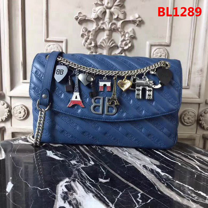 BALENCIAG巴黎世家 LOCK ROUND 18年早春新款絎縫鏈條包 手工刺繡LOGO 法國著名地標建築徽章 點綴鏈條  BL1289