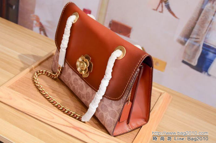 COACH蔻馳 爆款 C家30585 復古拼色蛇紋配皮翻蓋挎包 反毛皮內裏 鏈條肩帶 可單肩斜挎 Chz1016