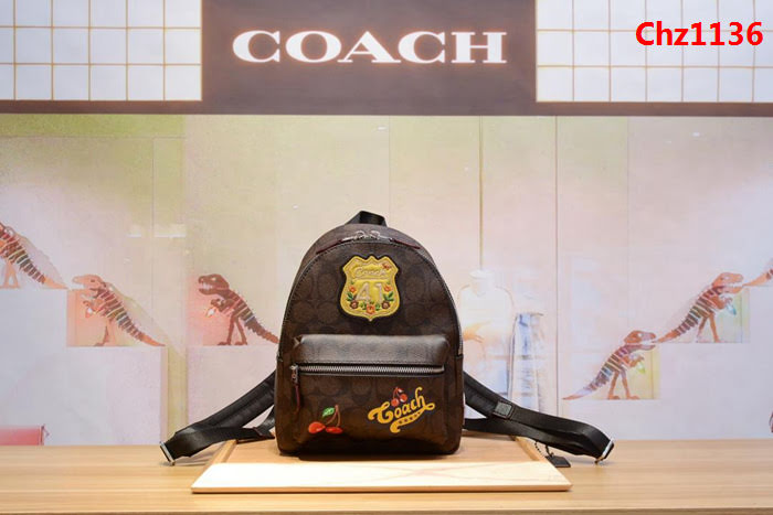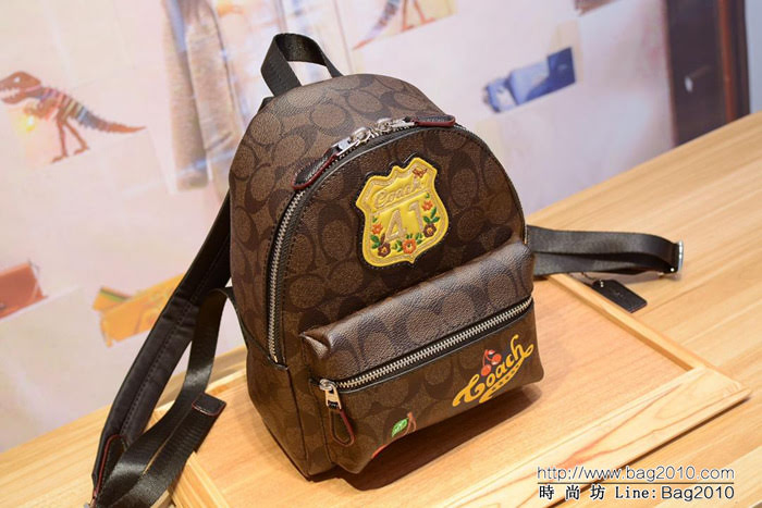COACH蔻馳 新款C家 F25909 櫻桃印花徽章 迷你雙肩背包 女士書包 小巧可愛款 Chz1136