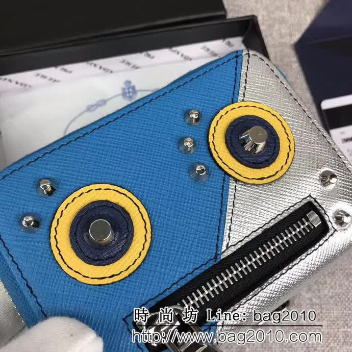 【原單代購級】PRADA限量版男士拉鏈卡包 專櫃最新款式,官網同步,正品開發,型號2MM359,顏色:淺藍+銀色/拼色機器人,內碼224代工碼 義大利頂級原單十字紋牛皮質感極好,進口螺紋裏布 進口白鋼五金配件!精湛走線均勻整齊 純手工油邊平滑,做工精湛 品質媲美正品,洋溢個性時尚氣息的機器人設計,就是要你好看 尺寸:長11cm高8cm【配原單包裝盒身份證卡片編號可掃碼】