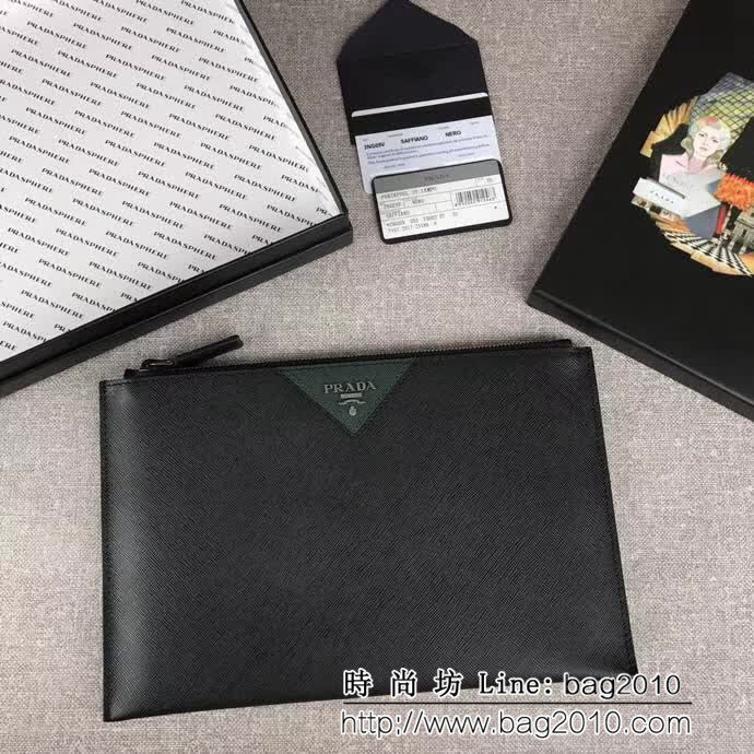 【原單代購級】PRADA男士手包 專櫃最新款式,官網同步,正品開發,型號2NG05V,顏色:黑+綠/散字嘜,內碼布標175代工碼 義大利頂級原單十字紋牛皮質感極好,內裏進口羊皮,原單Lampo拉鏈 進口槍色五金配件!精湛走線均勻整齊 純手工油邊平滑,做工精湛 品質媲美正品,尺寸:長28cm高18cm【配原單包裝盒身份證卡片編號可掃碼】
