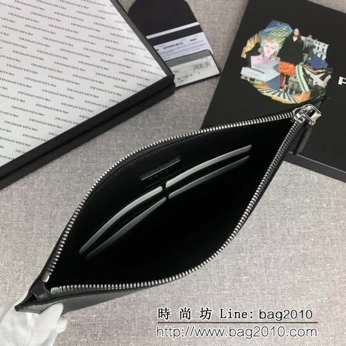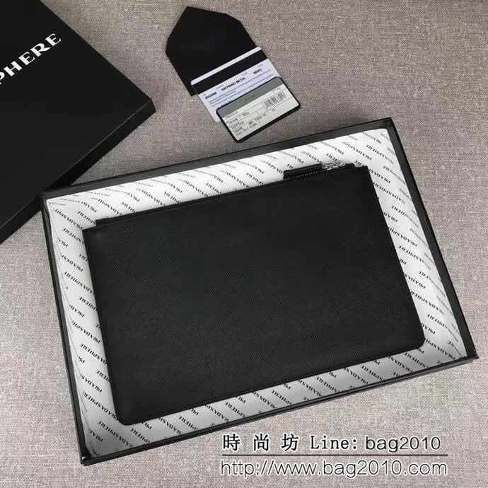【原單代購級】PRADA男士手包 專櫃最新款式,官網同步,正品開發,型號2NG005,顏色:黑色/邊角散字嘜,內碼布標175代工碼 義大利頂級原單十字紋牛皮質感極好,內裏進口羊皮,原單Lampo拉鏈 進口白鋼五金配件!精湛走線均勻整齊 純手工油邊平滑,做工精湛 品質媲美正品,尺寸:長28cm高18cm【配原單包裝盒身份證卡片編號可掃碼】