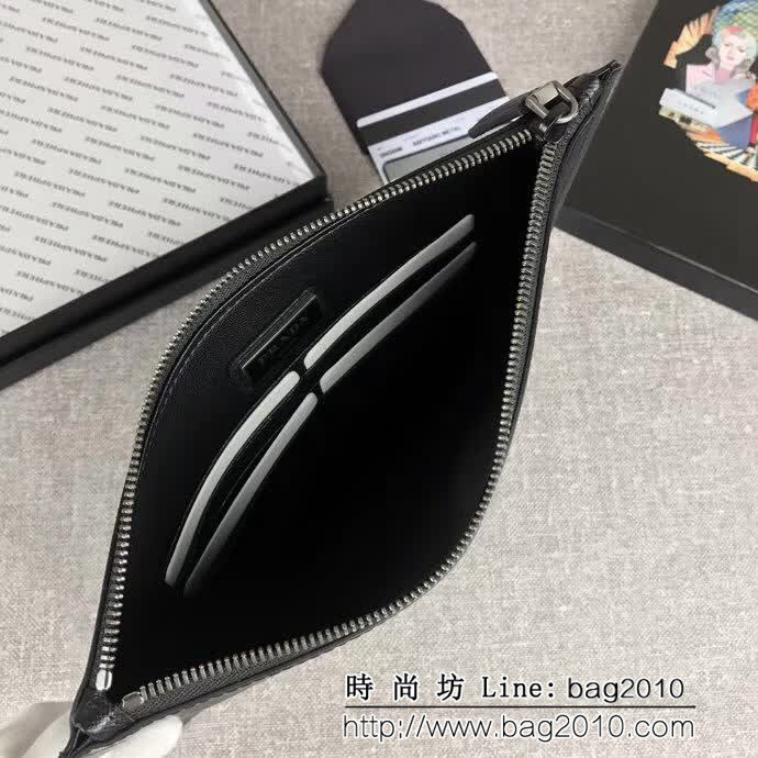PRADA普拉達 官網同步 專櫃最新款式 頂級原單十字紋牛皮 男士手包 2NG05M DD1167