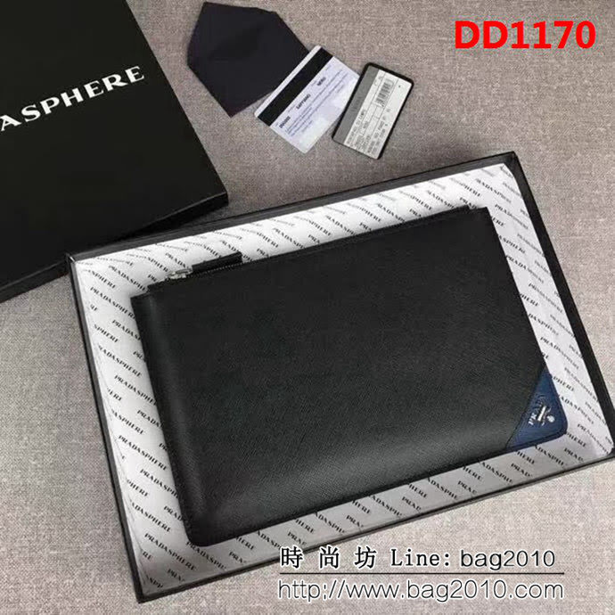 PRADA普拉達 官網同步 專櫃最新款式 頂級原單十字紋牛皮 男士手包 2NG005 DD1170