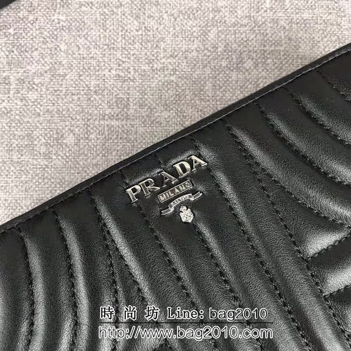 【原單代購級】PRADA女士單拉鏈錢包 專櫃最新款式,官網同步,正品開發,型號1ML506,顏色:黑色/繡線散字嘜,內碼164代工碼 義大利頂級原單納帕牛皮質感極好,進口螺紋裏布 原單進口白鋼五金配件!精湛走線均勻整齊 做工精湛 如圖可見 品質媲美正品,尺寸:長20cm高10.3cm【配原單包裝盒身份證卡片編號可掃碼】