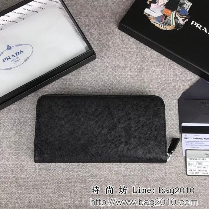 【原單代購級】PRADA爆款男士單拉鏈錢包 官網同步,正品開發,型號2ML317,顏色:黑色/壓字嘜,內碼164代工碼 義大利頂級原單十字紋牛皮質感極好,進口螺紋裏布 進口白鋼五金配件!精湛走線均勻整齊 做工精湛 品質媲美正品,尺寸:長20cm高10.3cm【配原單包裝盒身份證卡片編號可掃碼】