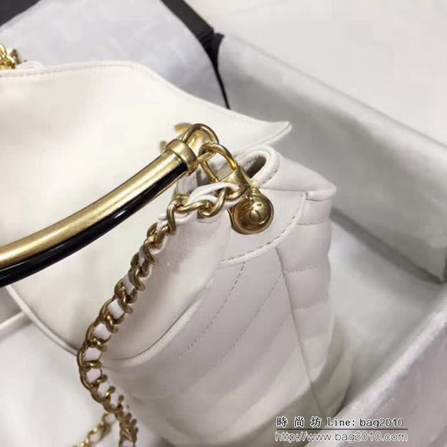 CHANEL 型號 57861 尺寸 12X11X16CM 2018款水桶包 羊皮"花金五金 V字形設計 水桶型 時尚簡約風格大方優雅迷人 充滿魅力個性,