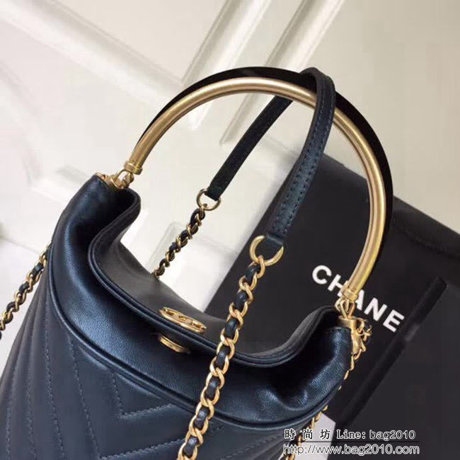 香奈兒CHANEL寶藍Chanel A57861 2018早秋Paris-Hamburg復古風小羊皮水桶包鏈條包DSC1490