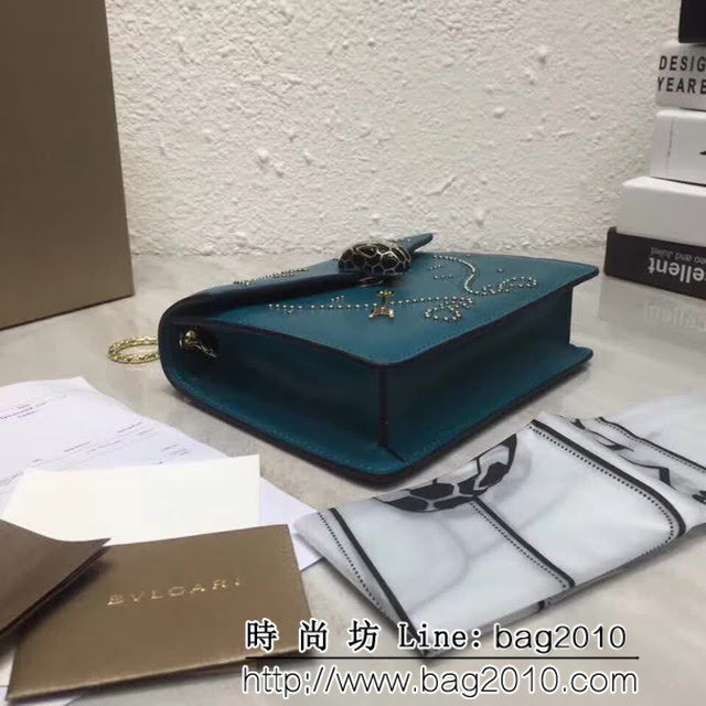 Bvlgari寶格麗 Serpenti Forever小牛皮翻蓋包,Pop-Heart鉚釘裝飾,鐳射與鉚釘相結合組成心形靈蛇圖,愛神之箭 俘虜你心 原版裏外全皮,款號:285884,尺寸:20×14×4.5cm