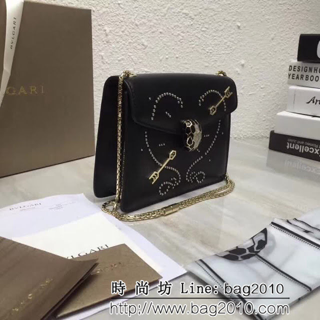 Bvlgari寶格麗 Serpenti Forever小牛皮翻蓋包,Pop-Heart鉚釘裝飾,鐳射與鉚釘相結合組成心形靈蛇圖,愛神之箭 俘虜你心 原版裏外全皮,款號:285884,尺寸:20×14×4.5cm