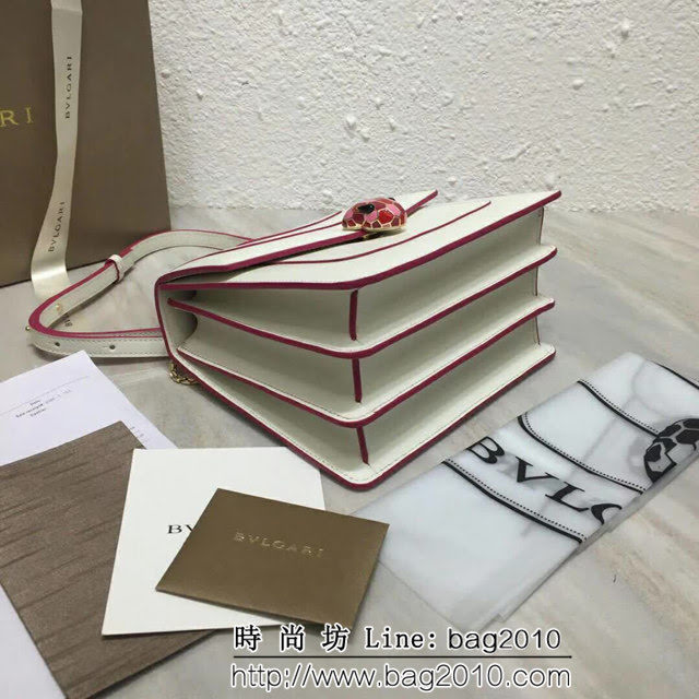 【Bvlgari 】寶格麗專櫃新款 原單品質 進口南非皮 定制原單五金 點綴serpenti黑色和白色琺瑯淺金鍍金蛇首形搭扣 雙眼鑲嵌孔雀綠松石 搭配可拆卸肩帶 內裏三格夾層簡約實用 足你不同需求 雷射仿偽標誌、內袋施印專屬型號編碼 款號:38329,尺寸:20x16x9cm