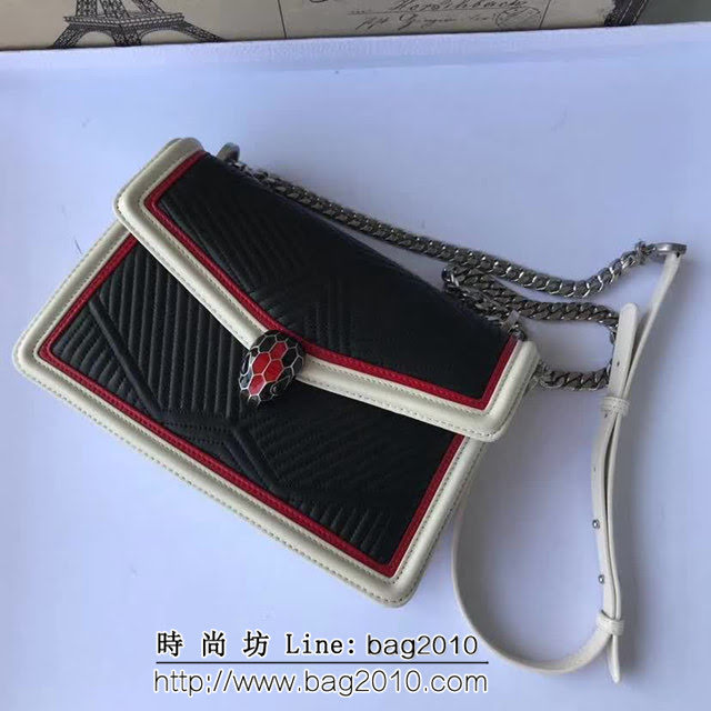 2018專櫃新型蛇頭包 蛇形繡線限定款 寶格麗 Bvlgari Serpenti Forever系列 286628#裏外全進口義大利小羊皮,相較於其他經典蛇頭包,此次採用了當前非常火熱的絎縫工藝 而且包包的搭配色來的更講究,配件則是保留一向非常奢華的琺瑯蛇頭! 專櫃一致雨衣、鏡子、禮盒包裝、雷射防偽標與施印獨立編碼一應俱全』尺寸:24x15x7cm