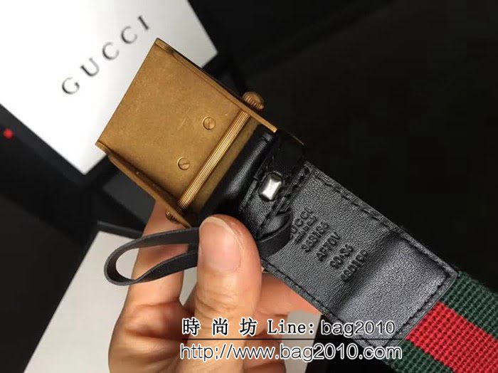 古馳CUCCI 休閒款式 原單織布自動帶 頭層接皮 純銅板扣男士皮帶 GHG1029
