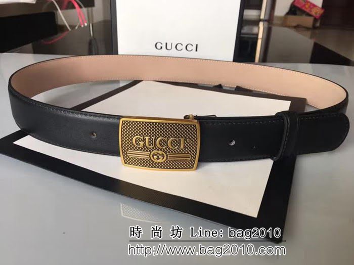 古馳CUCCI 頭層牛皮材料製作平紋面皮帶 純銅五金 男女同款 GHG1113