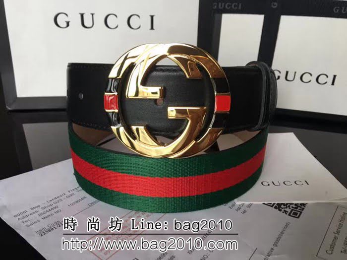 古馳CUCCI 紅綠織布頭層牛皮接頭尾 配純銅扣 百搭休閒款男士皮帶 GHG1180