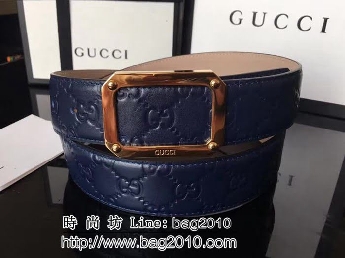古馳CUCCI 雙面進口皮 四方鏤空拋光五金銅扣 款式百搭男士皮帶 GHG1253