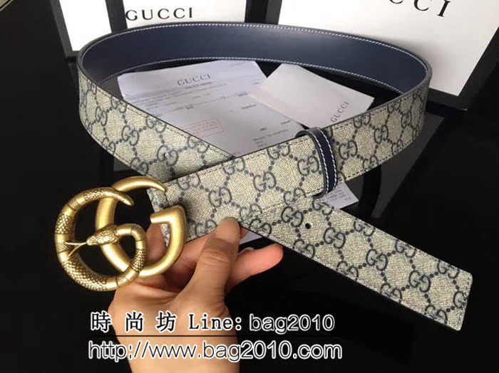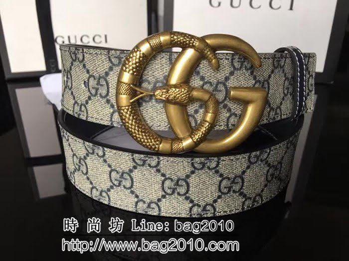 古馳CUCCI 高級人造革面料 頭層小牛皮底 純銅古金蛇紋扣 奢華時尚男士皮帶 GHG1266