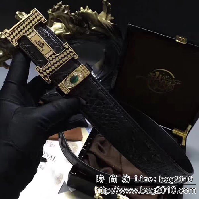 愛馬仕HERMES 純手工無拼接美洲鱷魚小骨皮 純手工高端男士皮帶 HHG1071