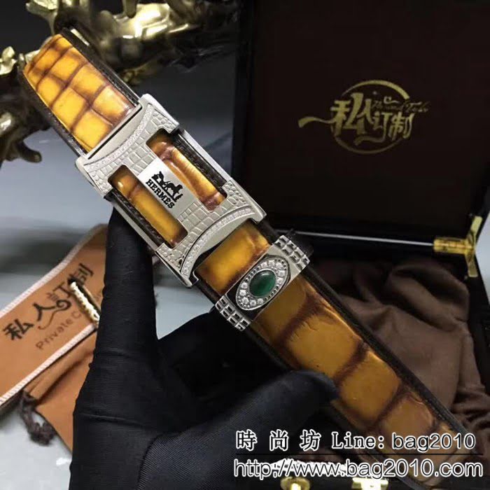 愛馬仕HERMES 純手工美洲鱷魚無拼接肚皮 自動高端男士皮帶 HHG1077