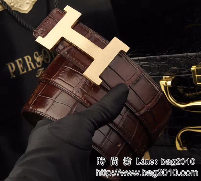 愛馬仕HERMES 進口鱷魚腹皮 鋼材質五金件高端男士皮帶 HHG1177