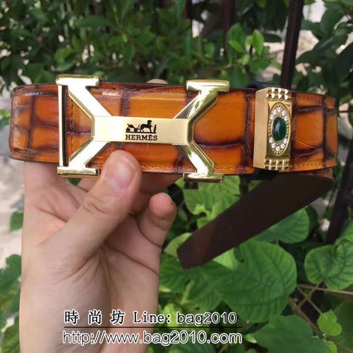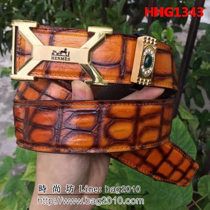 愛馬仕HERMES Hermes 純手工美洲鱷魚無拼接肚皮 海外專櫃高端男士皮帶 HHG1343