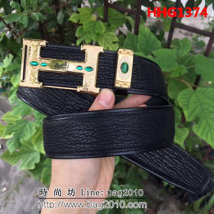 愛馬仕HERMES 太平洋深海鯊魚皮 斯里蘭卡鑲鑽貓眼石高端男士皮帶 HHG1374