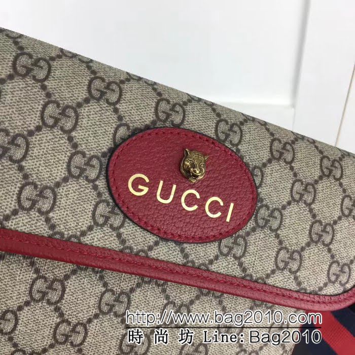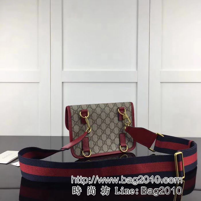 GUCCI古馳原單 新款專櫃品質原單貨實物實拍489617 啡Pvc紅皮腰包 HY1091
