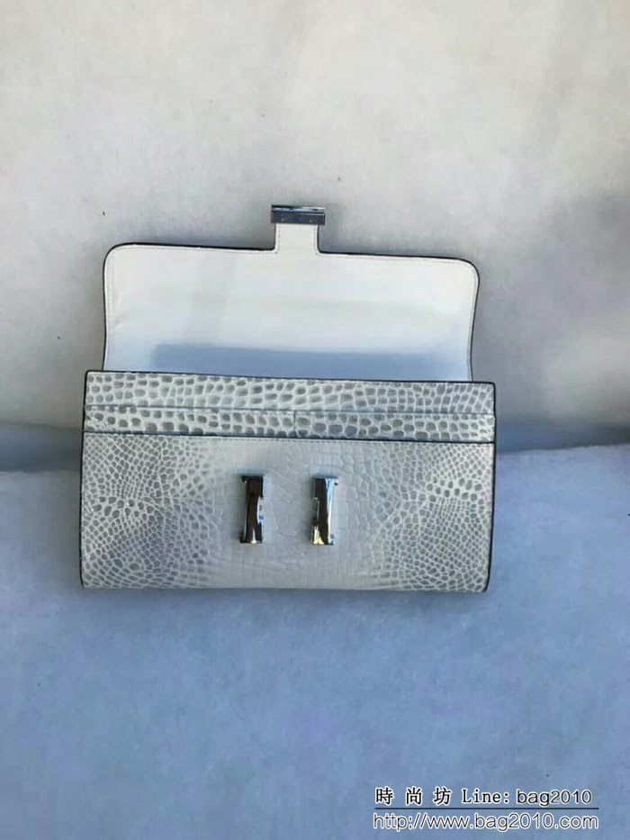 HERMES愛馬仕 H扣 鱷魚皮配羊皮 長款女士錢包 JD1295