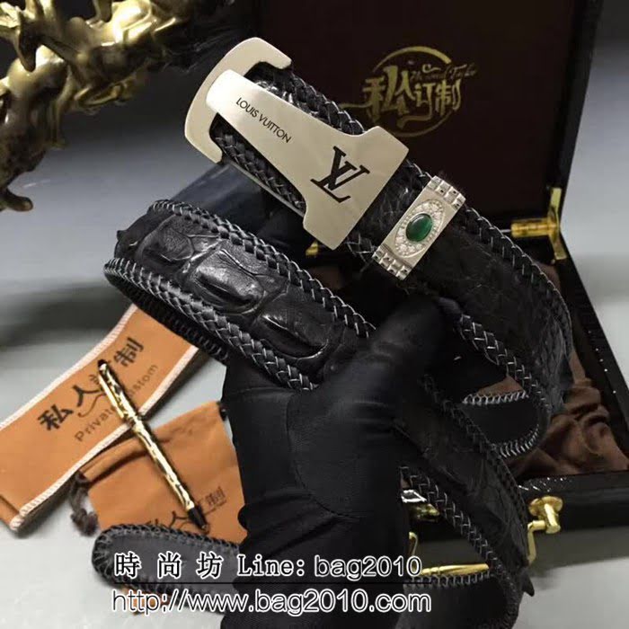 路易威登LV Louis Vuitton純手工編織美洲鱷魚骨皮 高端男士皮帶 LHG1082