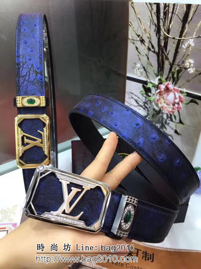 路易威登LV Louis Vuitton無拼接澳洲野生鴕鳥肚皮 精工鑲鑽高端男士皮帶 LHG1201