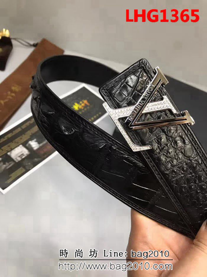 路易威登LV 真鱷魚骨皮尾部不拼接皮帶 高端男士皮帶 LHG1365