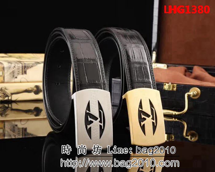 路易威登LV 進口鱷魚腹皮 鋼材質五金件 高端男士皮帶 LHG1380
