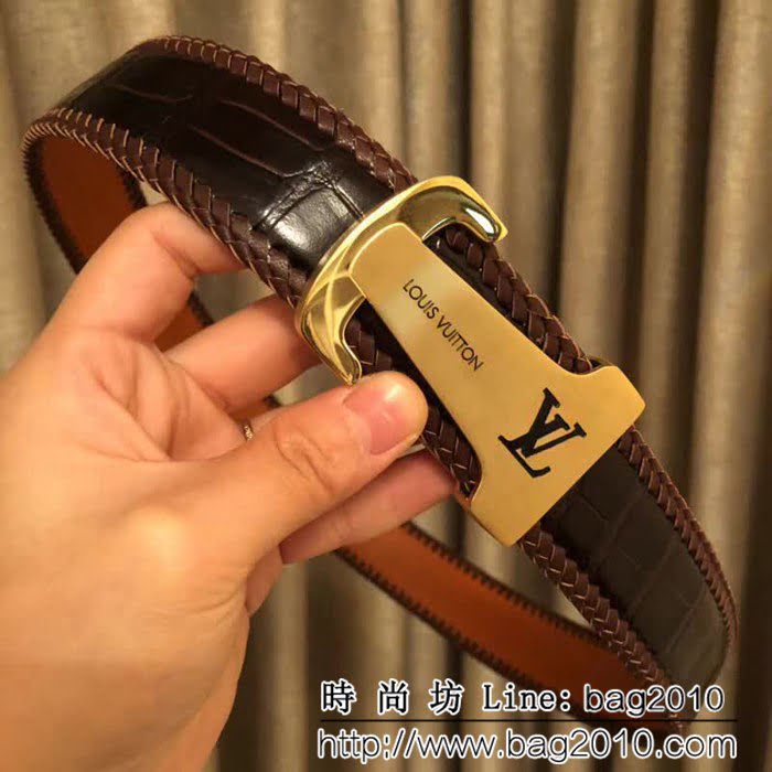 路易威登LV 手工編織 鱷魚紋牛皮 高端男士皮帶 LHG1659