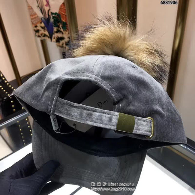 DIOR迪奧 火爆新款 羊絨搭配毛球鴨舌帽 6881906 LLWJ5654