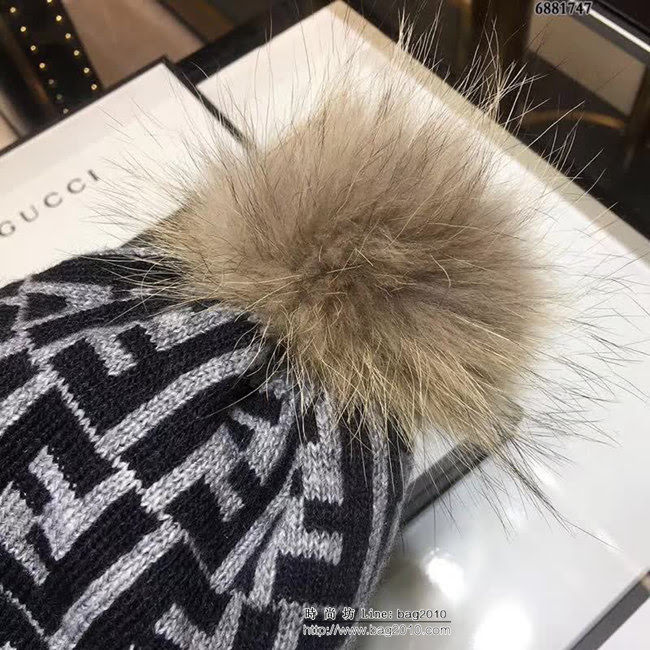 芬迪FENDI最新冬季百搭羊毛針織帽款,羊毛高端亮眼,採用精選毛線!手感超柔軟,彈性極佳!搭配狐狸毛球非常減齡!【6881747】