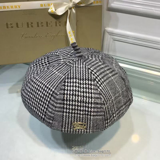 BUBBERRY巴寶莉 休閒百搭 2018秋冬新款格子加厚羊絨八角貝蕾帽 LLWJ5669