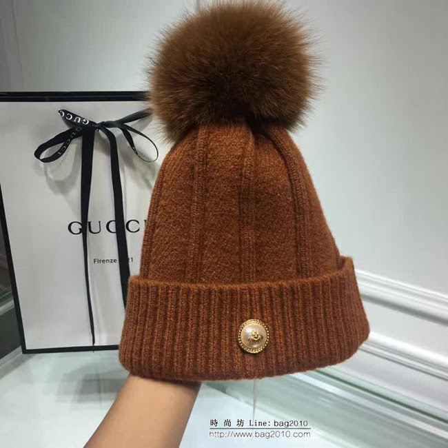 GUCCI古馳 百搭跑量款 2018秋冬 狐狸毛球毛線帽 LLWJ5781