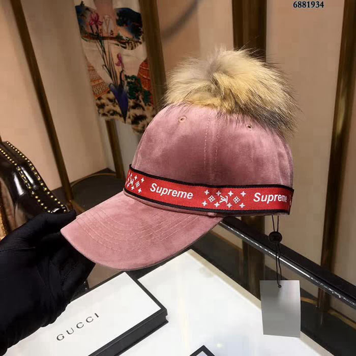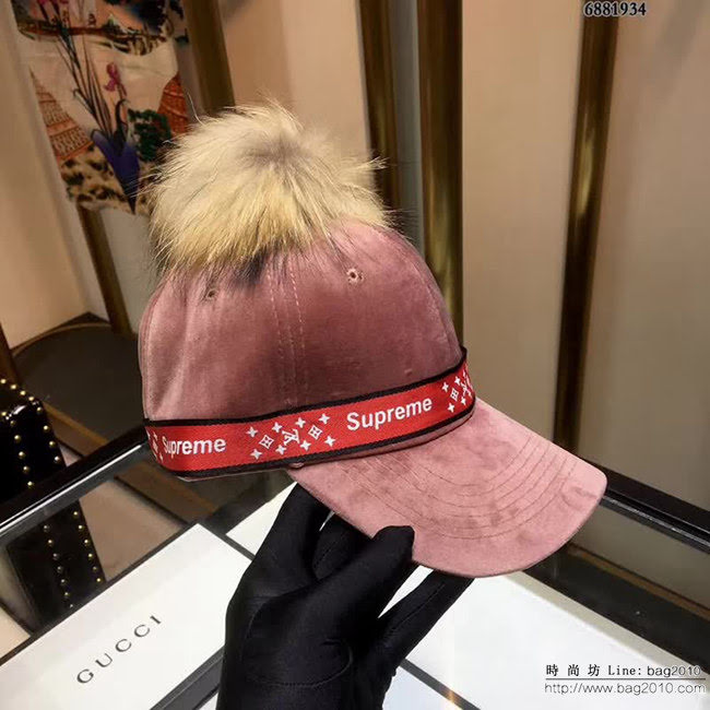 LV與supreme聯名秋冬棒球帽 毛球美美噠 絲絨面料簡約大氣時尚大方低調奢華防曬,時尚兩不誤,百搭款 親,趕緊入手吧 你值得擁有!可調節大小【6881934】