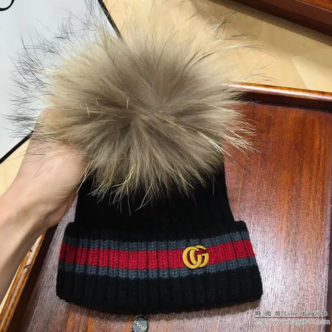 新款古馳GUCCI原單帽子 100%羊毛保暖又時尚 配15公分狐狸毛球,上專櫃古馳logo更顯氣質 百搭款高端大氣低調奢華 親,趕緊入手吧好貨強力推薦! 男女同款