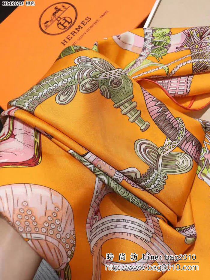 HERMES愛馬仕民族風手工卷邊斜紋真絲方巾 LLWJ6139