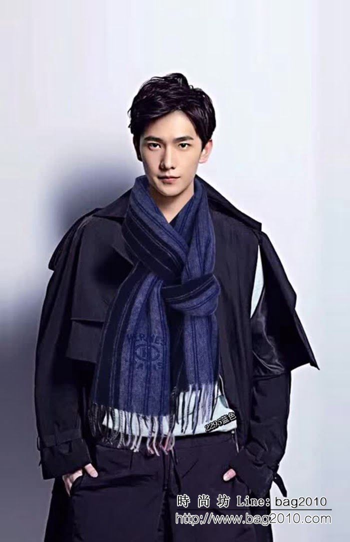 HERMES愛馬仕2018最新款人字紋羊絨素色圍巾 情侶款 2295 LLWJ6161