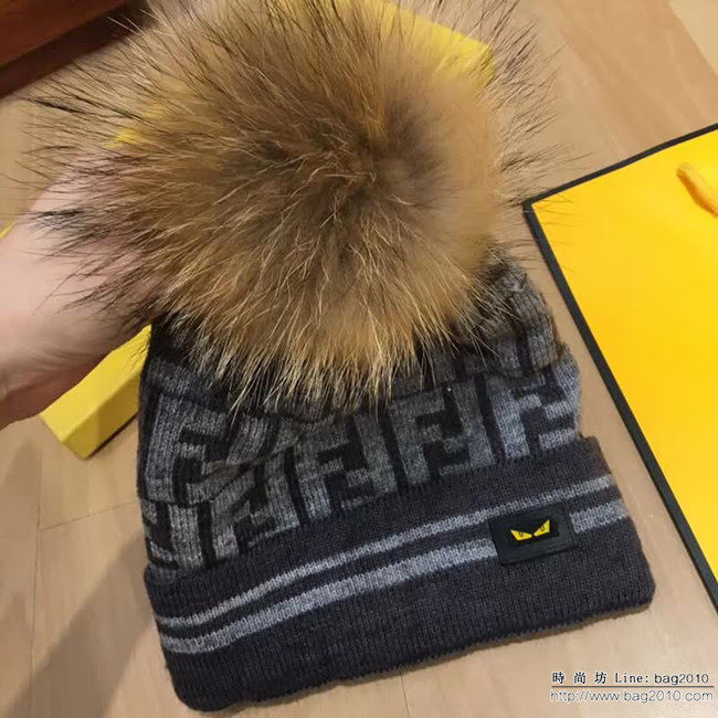 FENDI芬迪 秋冬新款 爆款簡單大氣 羊毛配狐狸毛球針織帽 LLWJ6196