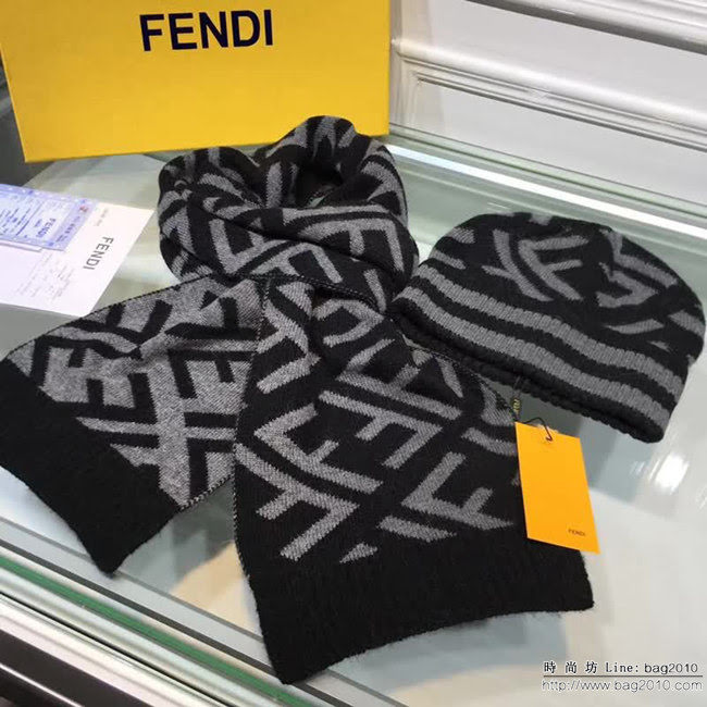 FENDI芬迪 原單 官網最新羊毛針織帽子圍巾套裝 男女同款 LLWJ6214