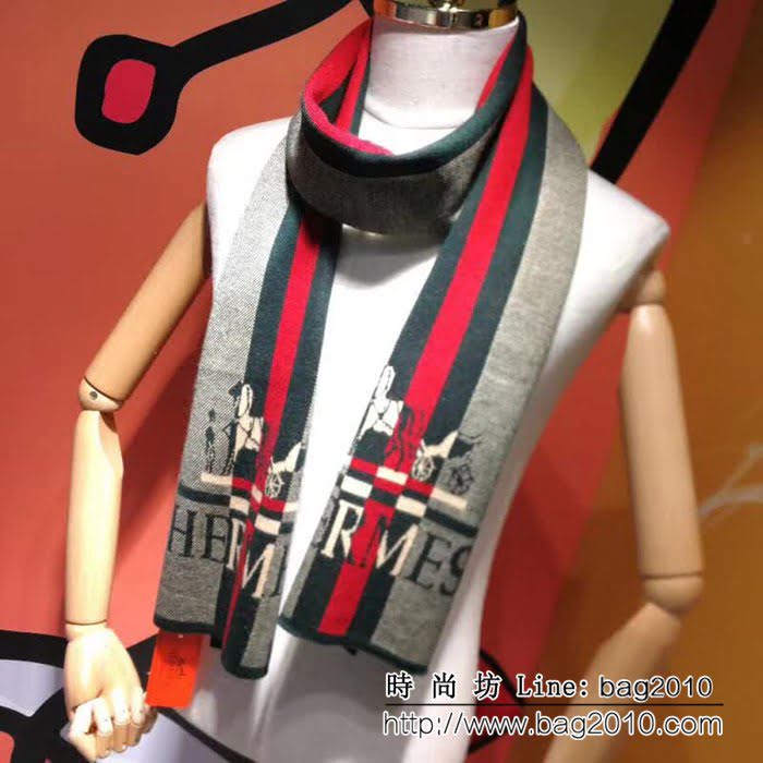 HERMES愛馬仕專櫃同步2018男士冬季羊毛圍巾 男女同款 LLWJ6229