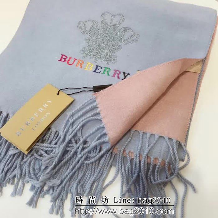 BURBERRY巴寶莉 2018新款 雙色雙面彩色刺繡羊絨圍巾 LLWJ6273