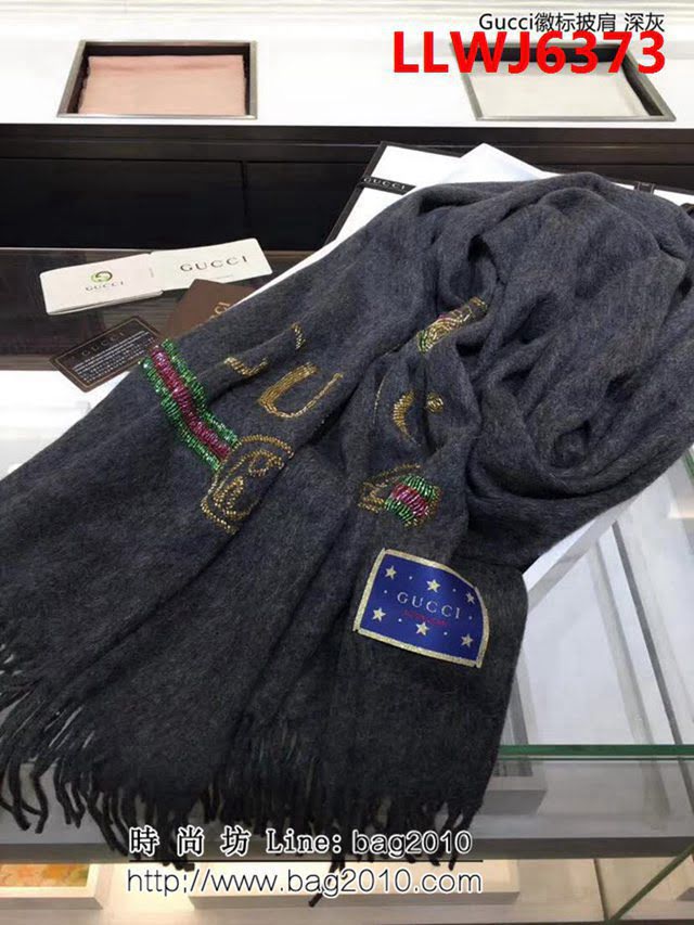 GUCCI古馳專櫃管道 純手工縫珠山羊絨徽標披肩 LLWJ6373